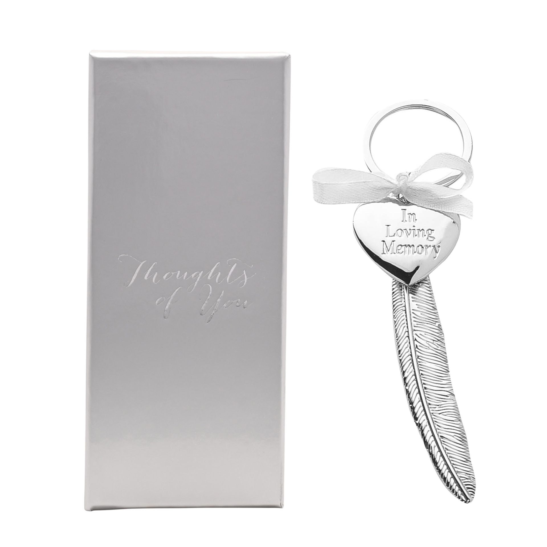 Engravable Silver Metal Feather Heart Plaque "Loving Memory"